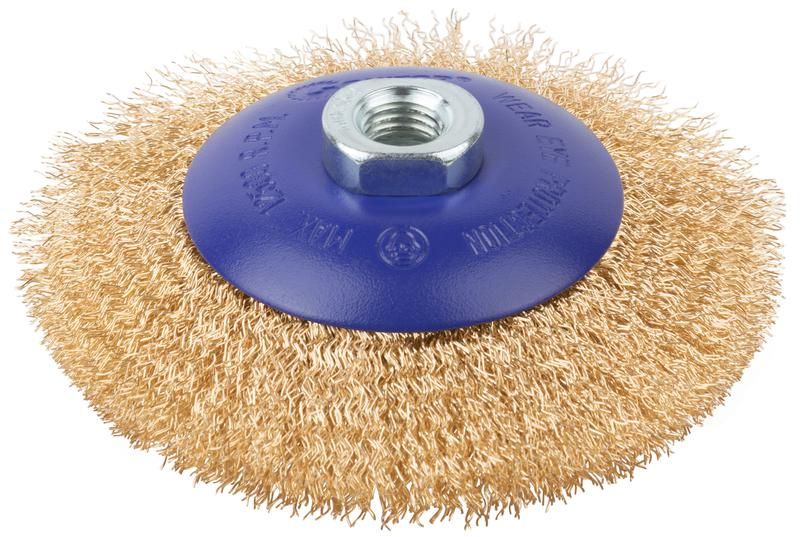 Щетка для УШМ, М14, Тарелка, латунированная витая проволока 0,3 мм, 125 блистер, Profi - 82-903 РОС