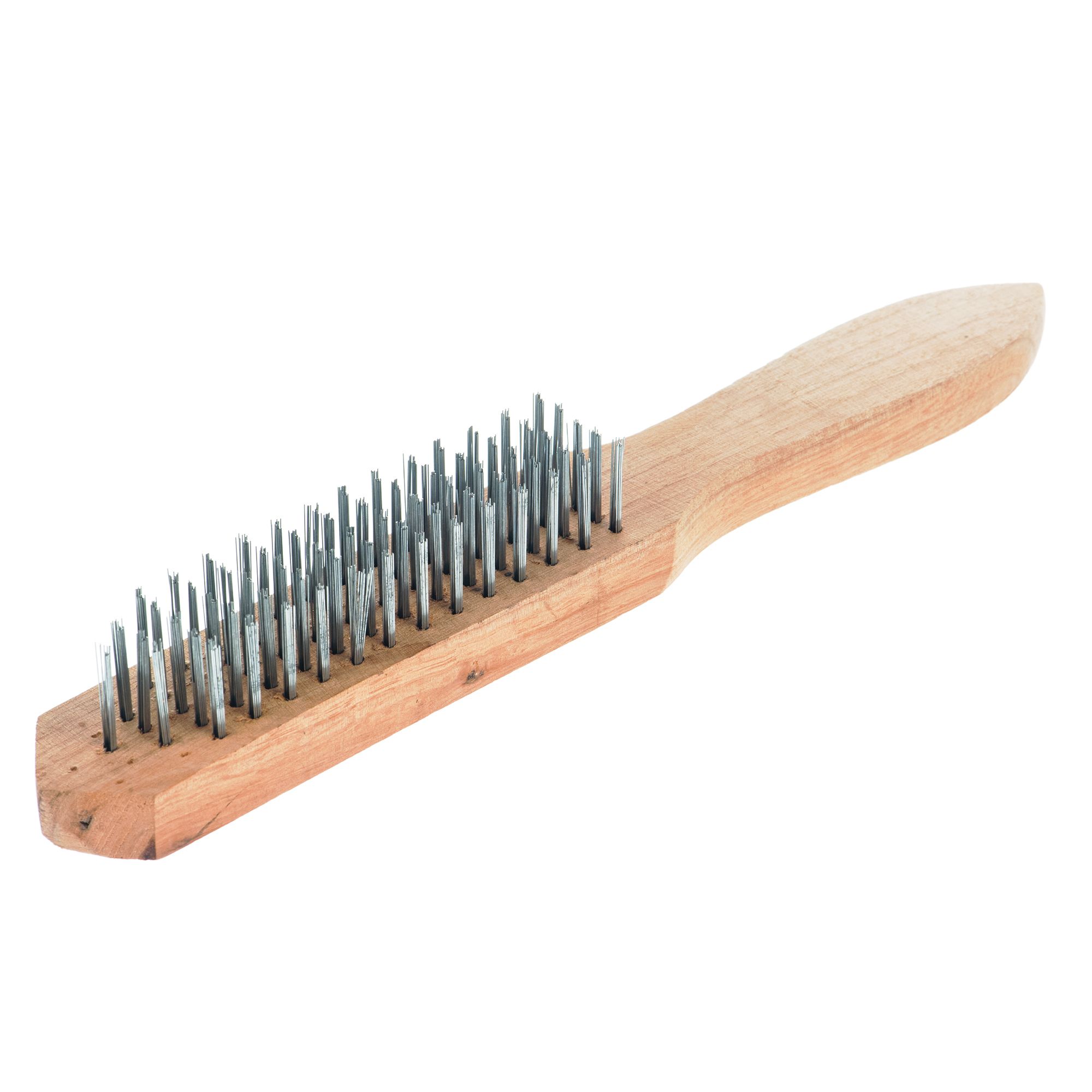 Щетина из высококачественной стальной проволоки устойчива к износу, поэтому щетка выдерживает интенсивное применение|На проволоку нанесено цинковое покрытие для защиты от коррозии, что увеличивает срок службы инструмента|Прочная деревянная рукоятка обеспечивает долговечность щетки