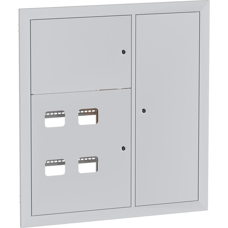 Щит этажный 4 квартирный (1000х950х160) PROxima рассчитан на установку в сплошную стену толщиной не менее 180 мм. Глубина корпуса 160 мм требует наличия ниши подходящего размера. Каждая из трёх дверей имеет собственные замки - это позволяет организовать раздельный доступ для управляющей компании и жильцов. Монтаж выполняется с помощью крепёжных отверстий по бокам корпуса. Установка должна проводиться до отделки стен - после штукатурки или облицовки изменить положение невозможно.