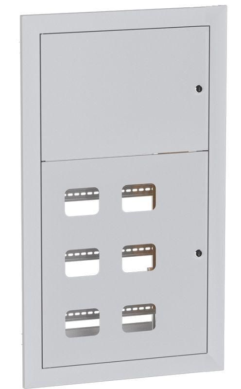 Щит этажный 6 кв. без слаботочных отсеков (1000х650х150) сталь серый IP00 рассчитан на встраивание в стену. Габариты ниши должны быть минимум на 10–15 мм больше габаритов самого щита - это необходимо для компенсации неровностей кладки и фиксации кронштейнами. Убедитесь, что глубина ниши достаточна для свободного открывания всех трёх дверей. Кабели заводятся через кабельные вводы, предусмотренные в нижней части корпуса. Наличие трёх дверей позволяет выполнять работы в одной зоне без вскрытия всего щита - удобно при обслуживании нескольких собственников квартир.