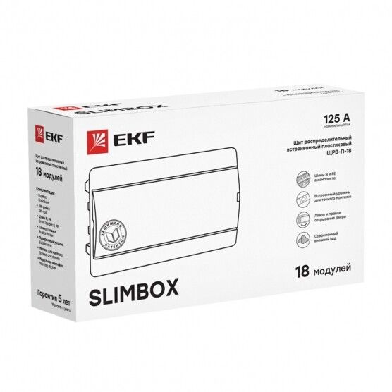 Щит распределительный встраиваемый ЩРВ-П-18 SlimBox белая дверца IP41 от бренда EKF - компактная и надежная конструкция для внутренней установки в стену, предназначенная для размещения модульной аппаратуры: автоматов, УЗО, счетчиков и других устройств на DIN-рейке. Артикул sb-v-18w подходит для жилых, офисных и коммерческих объектов, где важна эстетика и безопасность.