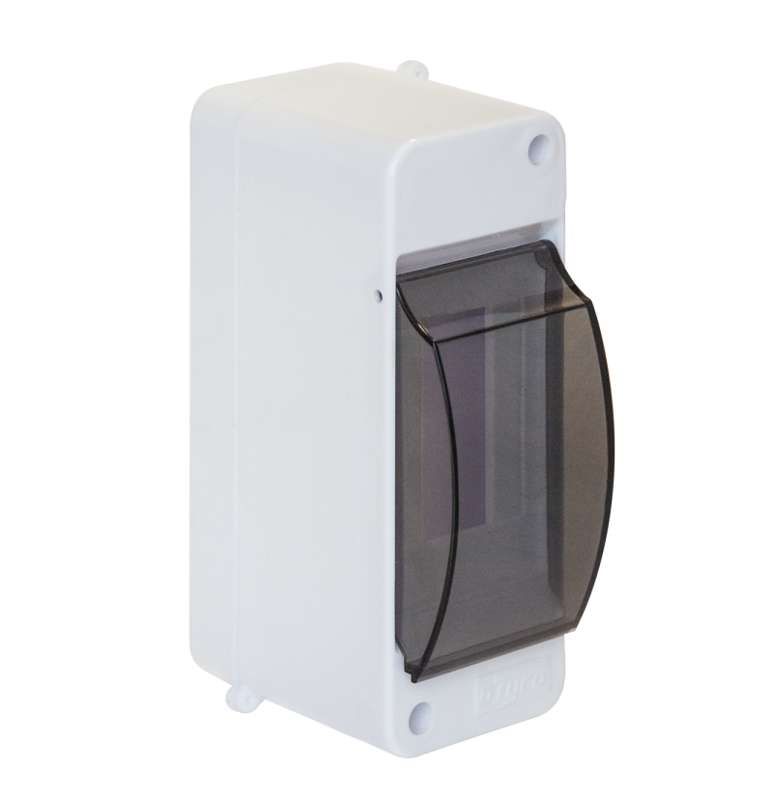Щиток распределительный открытого исполнения на 2 модуля с вертикальной дверцей 130х51х83мм от брендов Рувинил и Ruvinil (арт. 68102) предназначен для компактного монтажа автоматических выключателей, УЗО и других устройств в условиях, где не требуется герметичная защита корпуса.