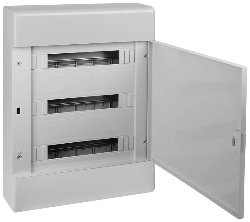 Щит распределительный навесной открытого типа на 54 модуля с непрозрачной дверцей серый IP41 (ЩРн-П-54, Тусо) предназначен для внутреннего монтажа модульного оборудования: автоматов, УЗО, реле напряжения, счётчиков электроэнергии. Применяется там, где требуется доступ к щиту без необходимости герметичной защиты - в жилых домах, офисах, складах, магазинах и производственных цехах. Открытый тип монтажа позволяет устанавливать щит прямо на стену, без устройства ниш или коробов.