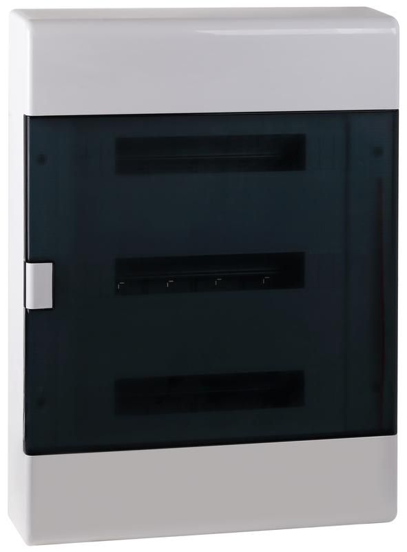 Щит распределительный навесной открытого типа на 54 модуля с дверцей IP41 совместим со всеми стандартными DIN-рейками 35 мм, используемыми в модульном оборудовании. Для монтажа необходимы два кронштейна (входят в комплект) и шурупы для фиксации на стену. Перед установкой проверьте, чтобы поверхность была ровной и не подвергалась механическому воздействию. Кабели заводятся через предварительно подготовленные отверстия в нижней и боковой частях корпуса. Дверца открывается на 90 градусов - обеспечивает свободный доступ ко всем модулям.