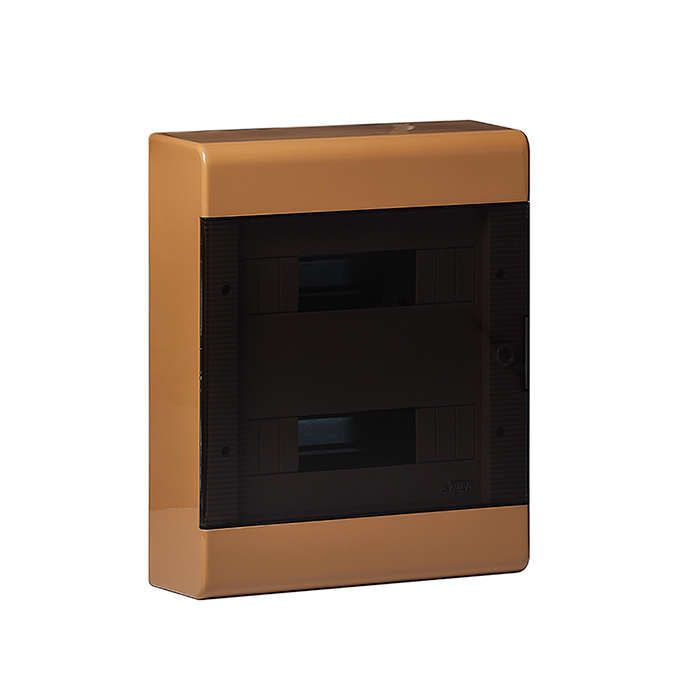 Щит распределительный навесной открытого исполнения на 24 модуля с дверцей IP40 коричневый соответствует требованиям ГОСТ Р 50030.2 и IEC 61439-3 для распределительных щитов низкого напряжения. Материал корпуса - самозагасающий АБС-пластик, не распространяет пламя. Однако степень защиты IP40 не предназначена для работы в условиях повышенной влажности, пыли или воздействия жидкостей - применение вне помещений или в сырых зонах (ванна, подвал, улица) запрещено.