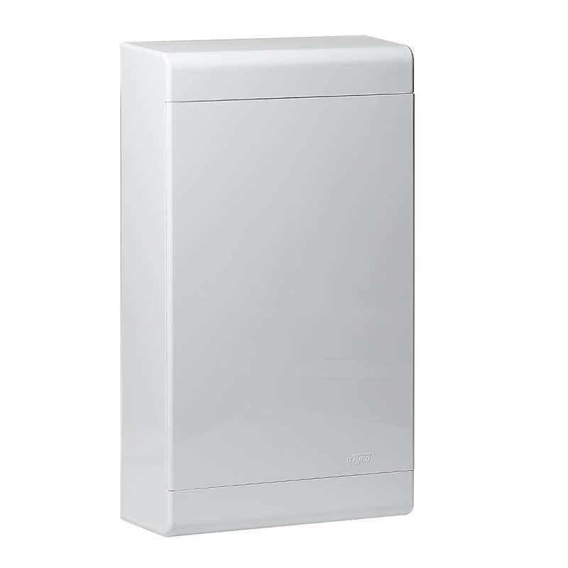 Щит распределительный навесной открытого исполнения на 36 модулей с непрозрачной дверцей IP40 совместим со всеми стандартными модульными устройствами: автоматическими выключателями, УЗО, реле напряжения, счетчиками и т.д. Монтаж выполняется на вертикальную поверхность из бетона, кирпича или гипсокартона с предварительной установкой крепёжных элементов. Диаметр отверстий под крепление - 5–6 мм. Перед монтажом проверьте соответствие глубины щита месту установки - он не требует углубления в стену. Кабели заводятся через предварительно подготовленные входные отверстия в нижней и боковой частях корпуса.