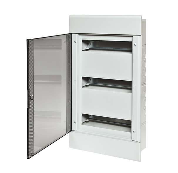 Щит распределительный встраиваемый на 36 модулей с дверцей IP40 используется для организации распределения электроэнергии внутри помещений. Подходит для установки в стенах из бетона, кирпича или гипсокартона. Применяется в квартирах, офисах, магазинах, производственных цехах и других объектах с необходимостью группового учета и защиты электроприборов. Каждый модуль может занимать один автомат, УЗО, реле или другую устройство стандарта DIN 35 мм.