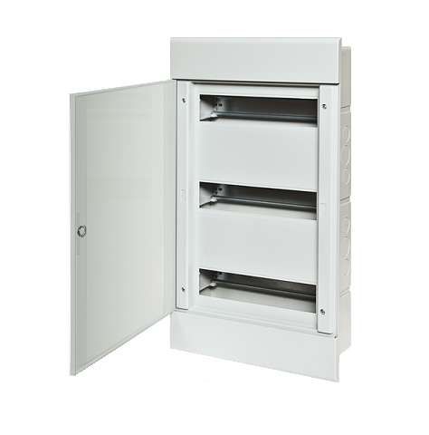 Щит распределительный встраиваемый на 36 модулей с непрозрачной дверцей серый IP40 используется для монтажа автоматических выключателей, УЗО, реле, счетчиков и других устройств в стеновые ниши. Применяется в новых и реконструируемых зданиях, где требуется скрытая проводка. Особенно удобен там, где важна эстетика - например, в квартирах, гостиницах, административных зданиях. Благодаря перфорации внутри можно легко адаптировать щит под нестандартные приборы учёта, такие как счётчики МЕРКУРИЙ 200.