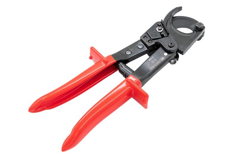 - Храповый механизм позволяет выполнять резку в несколько этапов - снижает нагрузку на руки при работе с плотными пучками