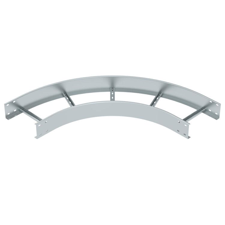 Секция угловая 90 градусов лестничного лотка 110х300 мм R=500 мм от OBO BETTERMANN предназначена для плавного изменения направления кабельных трасс на 90° в системах лестничных лотков с высотой бортов 110 мм. Артикул lb 90 1130 r5 fs обеспечивает надёжную прокладку кабелей в условиях повышенных нагрузок и требований к безопасности, включая объекты атомной энергетики.