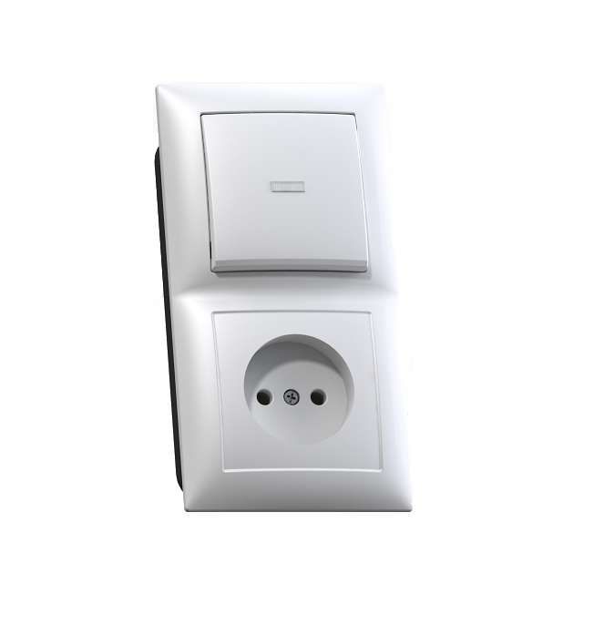 - Объединяет два функциональных элемента - выключатель и розетку - в одном модуле, снижая число отверстий в стене