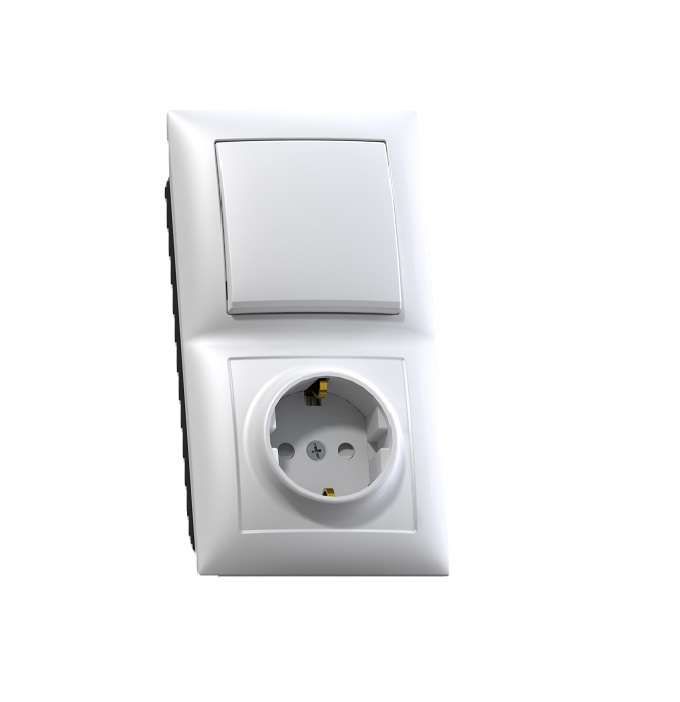 - Блок выключатель 10А / розетка с заземлением со шторками 16А БКВР-414 скрытый белый лучше всего сочетается с другими изделиями серии «Моноблок» от Кунцево-Электро для единого дизайна интерьера