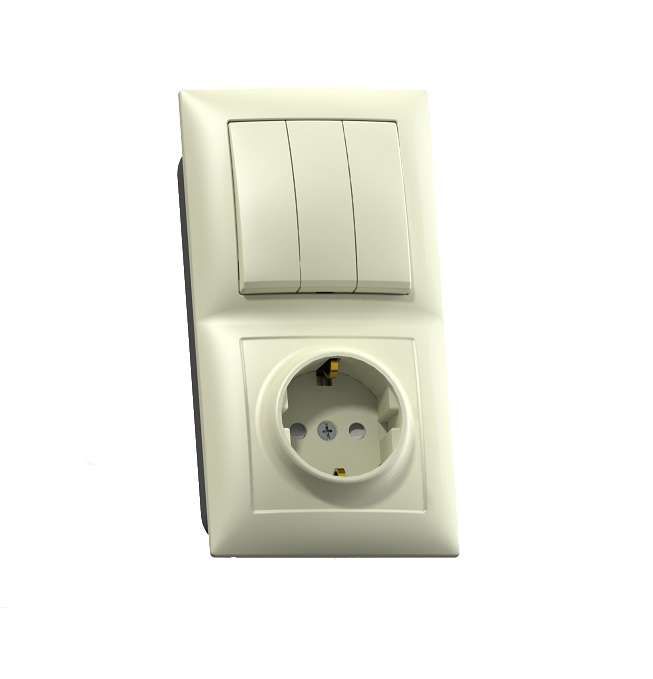 Блок выключатель 3-клавишный 10А / розетка с заземлением со шторками 16А БКВР-416 скрытый слоновая кость предназначен для одновременной установки трёх выключателей и одной розетки в едином корпусе. Удобен там, где требуется управлять несколькими группами света (например, люстра, бра, точечные светильники) и иметь доступ к розетке рядом - в спальне, гостиной, коридоре или на кухне. Подходит для скрытой проводки в бетонных, кирпичных и гипсокартонных перегородках.