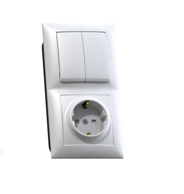 Блок выключатель двухклавишный 10А / розетка с заземлением со шторками 16А БКВР-415 скрытый белый сочетает в себе два функциональных элемента: двухклавишный выключатель для управления двумя группами светильников и одну розетку с заземлением для подключения устройств мощностью до 3,5 кВт. Устройство предназначено для установки в стену с предварительно смонтированной металлической или пластиковой подрозетником. Часто используется в спальнях, гостиных, коридорах и кухнях, где требуется одновременно управлять освещением и использовать розетку - например, для ночника, зарядки телефона или фена.