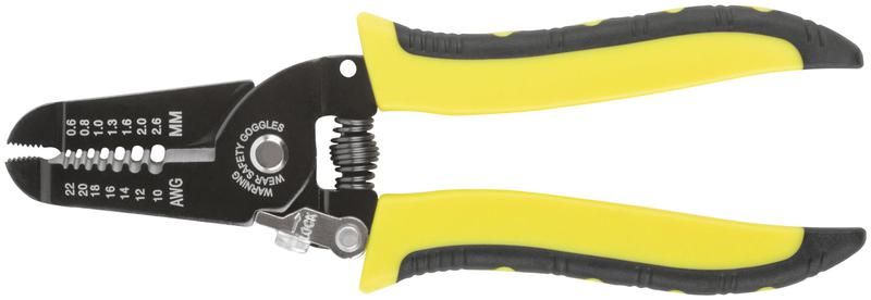 Съемник изоляции 0.6-2.6мм - 60021 FIT - это ручной съемник изоляции, предназначенный для электромонтажных работ. Он позволяет снимать изоляцию с одножильных и многожильных проводов с диаметрами от 0.6 до 2.6 мм.
