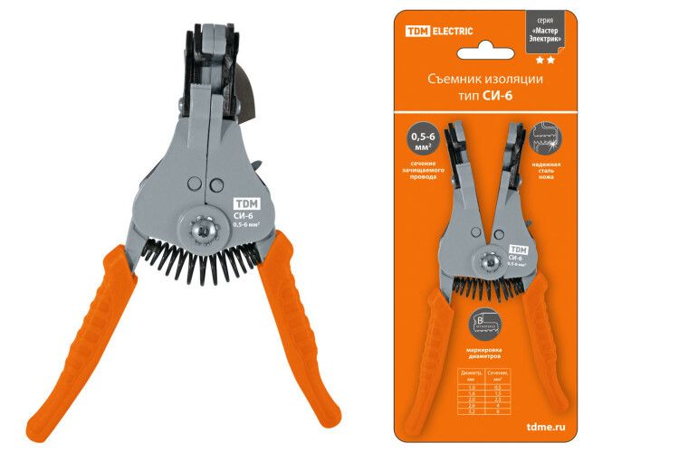 Съемник изоляции СИ-6, сечение зачищаемого провода 0,5-6 мм, "МастерЭлектрик" | SQ1003-0101 TDM