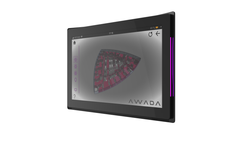 Сенсорная панель 15,6 дюйм монтируется настенным или настольным способом. Для настенного крепления предусмотрены стандартные крепёжные отверстия - необходимо использовать крепёж, соответствующий габаритам устройства. Панель не требует специальных рамок или коробов, но должна быть защищена от механических ударов и попадания жидкости. Подключение осуществляется через проводные интерфейсы (Ethernet, USB) или беспроводные (Wi-Fi, Bluetooth). Для питания от сети 230 В необходим внешний блок питания, который не входит в комплект. Совместима исключительно с программным обеспечением AWADA; сторонние приложения Android не рекомендуются из соображений стабильности системы.