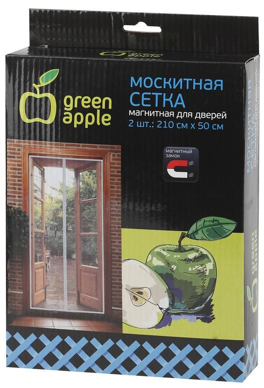 Сетка магнитная на дверь 210х50см, магнитный замок, комплект крепежа (липучка) 12шт, GBN007 - это легкая и удобная москитная система для защиты от насекомых, предназначенная для установки на входные и внутренние двери. Бренд Green Apple предлагает этот компактный вариант с магнитным защелкиванием и минимальной нагрузкой на конструкцию дверного проема.