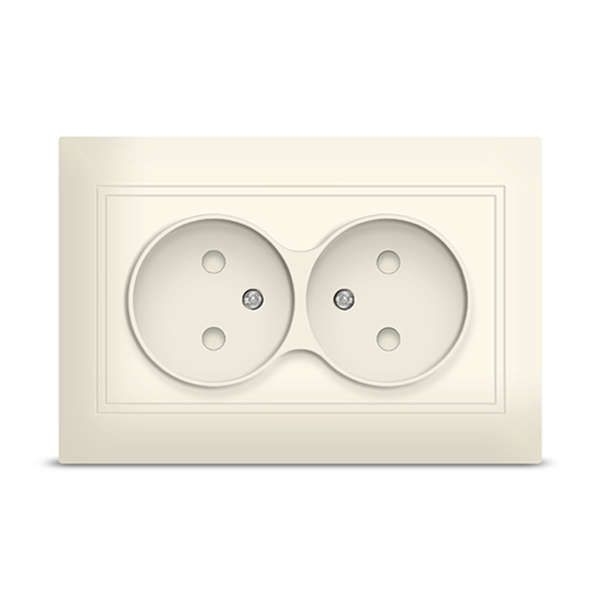 Розетка двойная без заземления с защитной шторкой слоновая кость предназначена для подключения бытовых приборов мощностью до 3,6 кВт (при 230 В и 16 А). Идеально подходит для зарядки телефонов, настольных ламп, телевизоров, компьютеров и другой маломощной техники. Установка осуществляется в стену - используется скрытая проводка. Применяется там, где требования к заземлению отсутствуют, например, в старых домах или в комнатах с низкой влажностью.