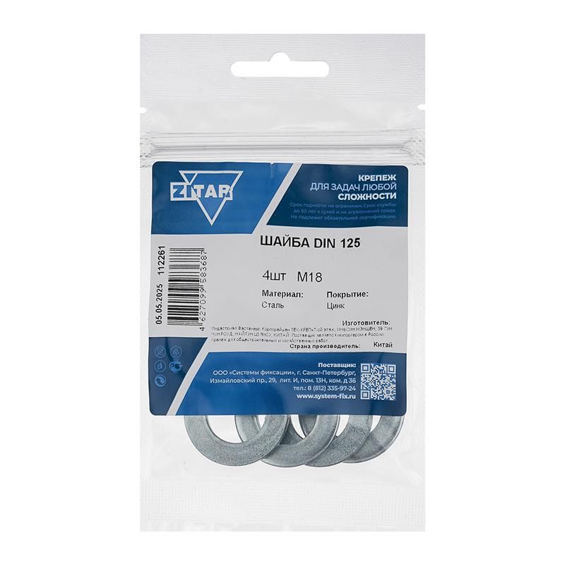 | Шайба плоская М18 DIN 125а оцинк. (уп.4шт) Zitar 112261 | 15.03.2026 | Под заказ | 28,53 ₽ | уп. 4 шт. | от 13 дней |