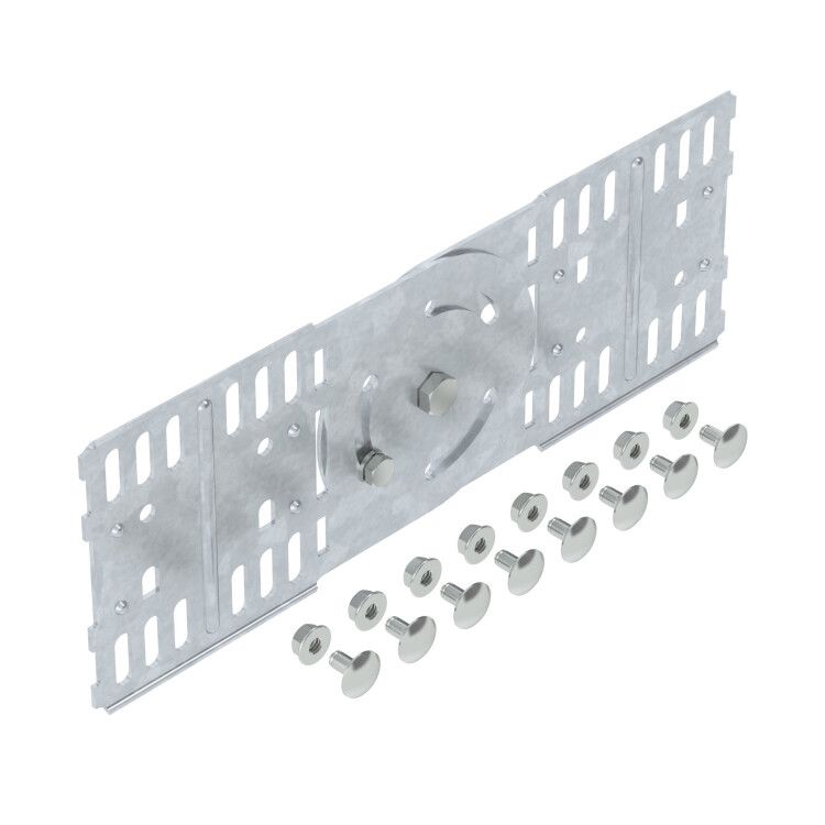 Шарнирный соединитель RGV 110 FT совместим исключительно с кабельными лотками OBO BETTERMANN серии с высотой стенки 110 мм. Для установки требуется выровнять торцы двух лотков, совместить их с соединителем и закрепить четырьмя болтами через предварительно просверленные отверстия. Монтаж выполняется без сварки - достаточно обычного инструмента: ключа на 10–13 мм и отвёртки. Соединитель рассчитан на сборку вручную; использование электроинструментов допустимо, но требует контроля усилия затяжки для избежания перегрузки резьбы.