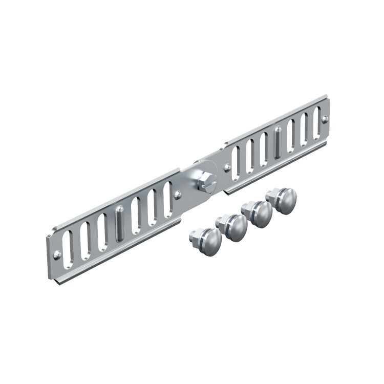 Шарнирный соединитель кабельного листового лотка 35x240 мм, серия RGV 35 FS - элемент для гибкого соединения участков кабельных лотков, позволяющий компенсировать температурные деформации и изменение направления трассы. Произведён компанией OBO BETTERMANN, артикул 7082002, предназначен для систем с оцинкованной стальной конструкцией.