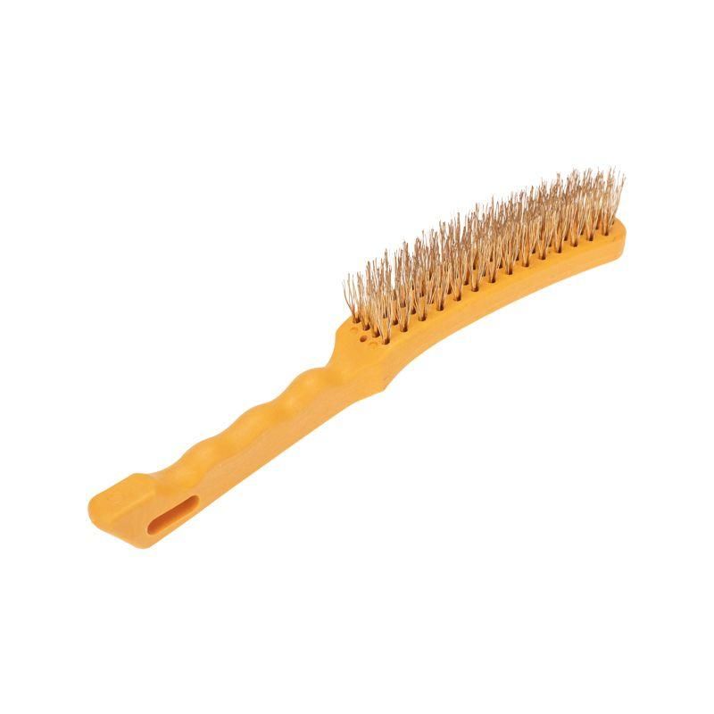 Латунирование - это тонкий слой латуни на проволоке, который снижает коррозию и увеличивает долговечность щетины. Плотное расположение четырех рядов позволяет эффективнее снимать толстые слои загрязнений за один проход.