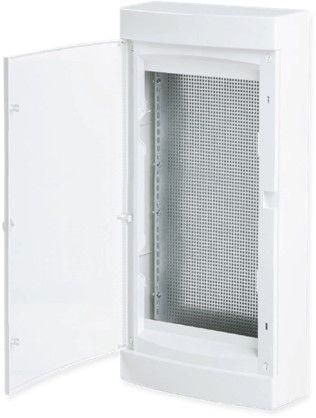 Щит слаботочный навесной прозрачная дверь 4 габарит IP41 используется для монтажа слаботочных систем: домашней автоматизации, сетей связи, видеонаблюдения, аудиооборудования, Wi-Fi точек доступа и других устройств с малой мощностью. Подходит для установки в жилых помещениях, офисах, серверных комнатах, на этажных щитках. Не предназначен для силового оборудования или условий с высокой запыленностью, влагой или механическими нагрузками.