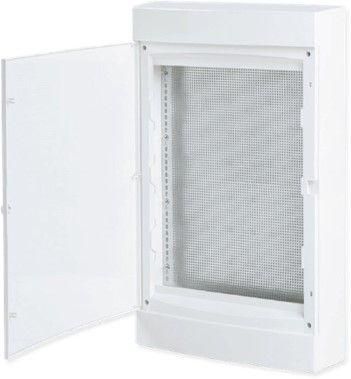 Щит слаботочный навесной прозрачная дверь 4 габарит увеличенный IP41 используется для монтажа слаботочного оборудования: сетевых коммутаторов, Wi-Fi точек доступа, видеорегистраторов, систем домашней автоматизации, телефонных шкафов и аналогичных устройств. Подходит для установки в жилых домах, офисах, учебных заведениях, малых предприятиях. Каждый ряд рассчитан на 18 модулей, всего - до 72 модулей. Увеличенный габарит позволяет разместить крупные устройства, которые не помещаются в стандартных щитах.