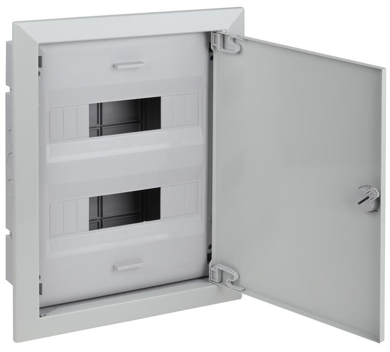 Щиток с/п на 24 модуля с металлической дверью предназначен для сборки и защиты электрооборудования в бытовых, коммерческих и промышленных сетях. Металлическая дверь обеспечивает механическую защиту и предотвращает случайное прикосновение к токоведущим частям. Подходит для монтажа в помещениях с контролируемой средой - например, в этажных щитовых, на производстве, в офисах и жилых домах.