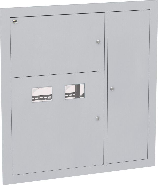 - Вводно-учетный отсек: оснащен перфорированными планками для крепления двух счётчиков (по одному на квартиру); возможно установить главный рубильник или автомат отключения магистрали;
