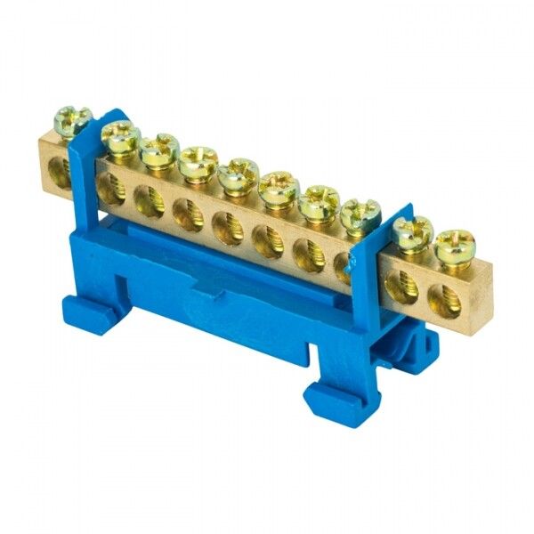 Шина нулевая N (6х9 мм) 10 отверстий латунь синий изолятор тип Стойка на DIN-рейку от EKF (артикул sn0-63-10-sb-r) - это надёжный элемент для распределения нулевого провода в щитах автоматики и силовой аппаратуры. Подходит для промышленного оборудования, где важны стабильность соединений и компактность.