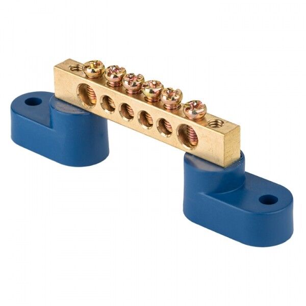 Шина нулевая N 6х9 6 отверстий 2 синих угловых изолятора латунь PROxima EKF sn0-2-63-06