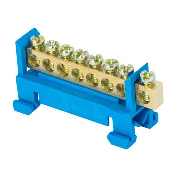 Шина нулевая N (6х9 мм) 8 отверстий латунь синий изолятор тип Стойка на DIN-рейку от EKF серии PROxima - это надёжное решение для распределения нулевого провода в щитах промышленного и коммерческого оборудования. Устройство фиксируется на DIN-рейке, обеспечивает безопасное соединение до восьми проводников и совместимо с медными и алюминиевыми жилами.