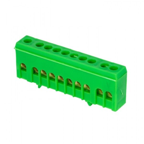 Шина нулевая PE 6х9 мм 10 отверстий латунь зеленый изолированный корпус на DIN-рейку от EKF серии PROxima - это надёжное решение для организации систем заземления и нулевого провода в распределительных щитах. Продукт предназначен для постоянного соединения проводников сечением 1,5–10 мм2 и рассчитан на работу в промышленных условиях.