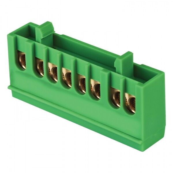 Шина нулевая PE (6х9 мм) 8 отверстий латунь зеленый изолированный корпус на DIN-рейку от EKF серии PROxima - это надёжный элемент для организации систем заземления и нулевого провода в распределительных щитах. Подходит для промышленного оборудования и НКУ, обеспечивает безопасное соединение проводников сечением 1,5–10 мм2.