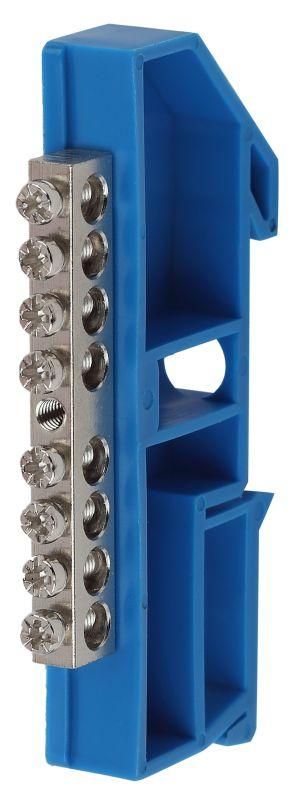 Шина нулевая на DIN-изолаторе ШНИ-6х9-8 никелированная синяя NO-222-85-1 от ЭРА предназначена для надёжного распределения нулевого и защитного проводника в щитах автоматики и силовой аппаратуры. Благодаря никелированному покрытию и изолированной установке на DIN-рейку, она устойчива к коррозии и безопасна при работе в условиях повышенной влажности.