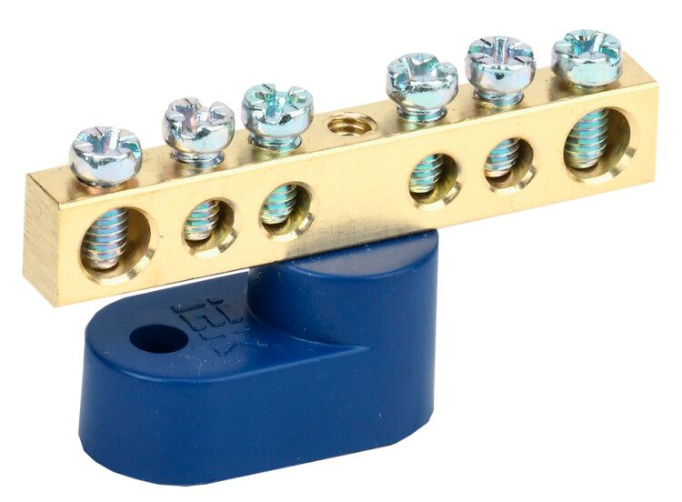 Шина выполнена в соответствии с требованиями к электроустановкам в РФ. Латунная основа и изоляция обеспечивают безопасную работу при напряжении до 380 В. Цветовое исполнение (синий) соответствует принятой цветовой маркировке для нулевых проводников. Наличие изолятора предотвращает случайное замыкание на корпус щита.