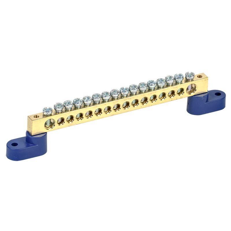 Шина ''N'' нулевая 8х12 мм на двух угловых синих изоляторах 16 групп, REXANT - 11-2337 MEET
