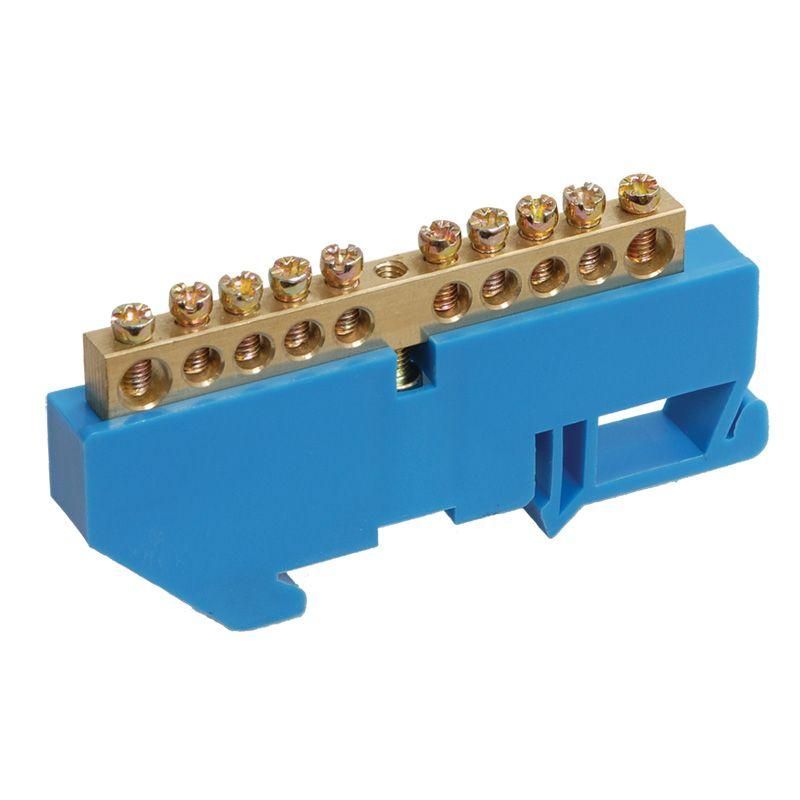 Шина ''N'' нулевая с синим изолятором на DIN-рейку 6x9 мм стойка бол. 10 групп, REXANT - 11-2341 MEET