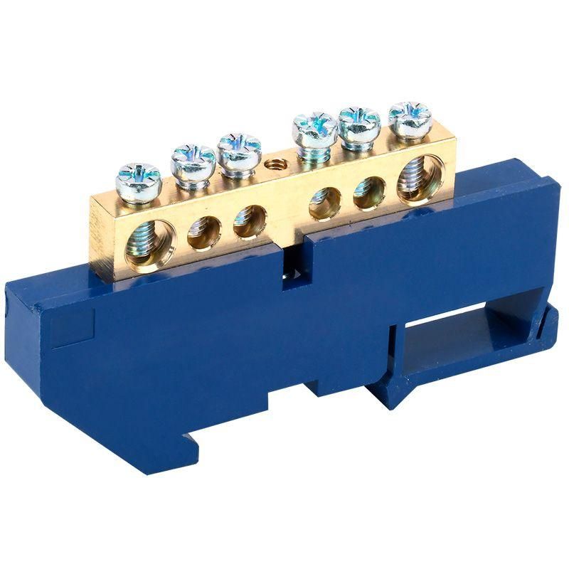 Шина ''N'' нулевая с синим изолятором на DIN-рейку 8x12 мм стойка бол. 6 групп, REXANT - 11-2346 MEET