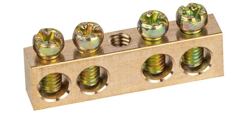 Шина NO-122-12 PEN земля-ноль 6х9 мм 4/1 латунная с креплениями по центру используется для создания единой точки соединения нулевых (N) и защитных (PE) проводников в распределительных щитах. Применяется в жилых, коммерческих и промышленных объектах, где требуется организованное подключение множества кабелей - например, в этажных щитках, щитах автоматики, на производствах с частыми операциями запуска/останова оборудования.
