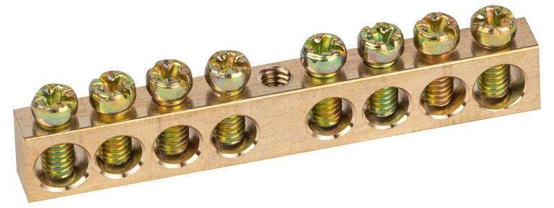 Шина NO-122-14 PEN земля-ноль 6х9мм 8/1 латунная с креплениями по центру | Б0047228 ЭРА
