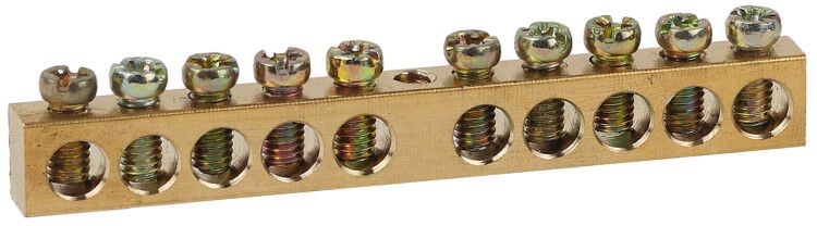 Шина NO-122-15 PEN земля-ноль 6х9мм 10/1 латунная с креплениями по центру | Б0047229 ЭРА