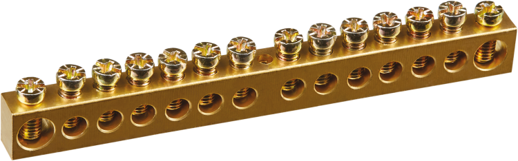 Шина нулевая 8х12 мм 14/1 (14 групп, крепеж по центру), NBB-812-14-1 от Navigator - компактное устройство для распределения нулевого провода в щитах. Латунная шина обеспечивает надёжное соединение до 14 проводов сечением от 0,75 до 35 мм2, подходит для бытовых и промышленных установок.