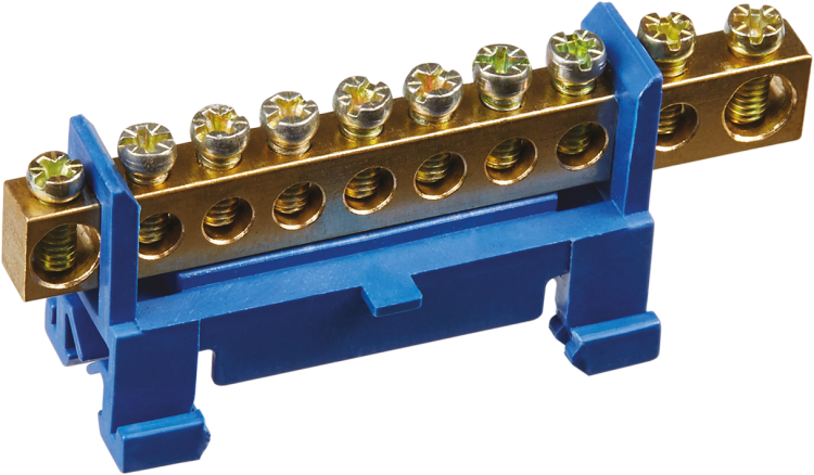 Шина нулевая на DIN-изоляторе тип Стойка 6х9-10 NBB-M69-10P/B от Navigator - надёжное решение для распределения нулевого провода в щитах автоматики и силовой электроустановки. Материал латуни и винтовые зажимы обеспечивают устойчивый контакт даже при высоких нагрузках, а синяя изоляция позволяет легко отличить её от фазных шин.