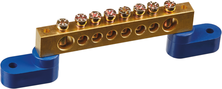 Шина нулевая на двух угловых изоляторах 8х12-8 NBB-M812-8C2/B - это надёжный элемент для распределения нулевого провода в щитах, обеспечивающий безопасное и удобное подключение до восьми проводников. Произведённая компанией Navigator, эта шина применяется в бытовых и промышленных электроустановках с напряжением до 400 В.