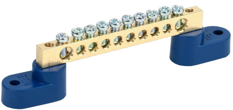 Шина выполнена в соответствии с требованиями к электроустановкам в России. Цветовая маркировка (синий) соответствует ГОСТ Р 50462 для нулевого проводника. Латунная основа обеспечивает безопасную передачу тока без нагрева выше допустимых значений. Наличие изоляторов исключает случайное замыкание на корпус щита. Не имеет сертификата UL или CE - применяется в рамках внутреннего рынка РФ и стран СНГ.