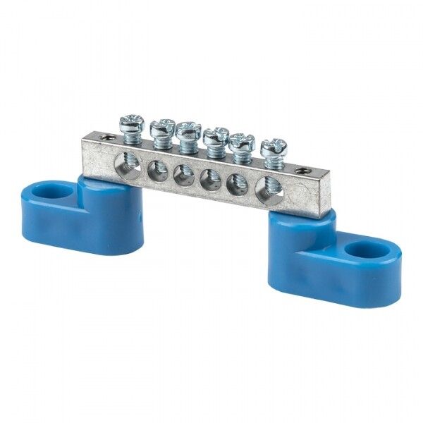 Шина нулевая N 6x9мм 6 отверстий цинк 2 синих угловых изолятора EKF - это надёжный клеммный блок для сборки нулевой шины в распределительных щитах. Продукт серии PROxima от EKF обеспечивает безопасное и компактное подключение до шести нулевых проводников с сечением до 9 мм2.