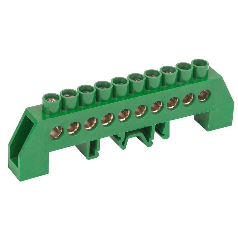 Шина PE ''земля'' в комбинированном зеленом изоляторе на DIN-рейку 6x9 мм 10 групп, REXANT - 11-2308 MEET
